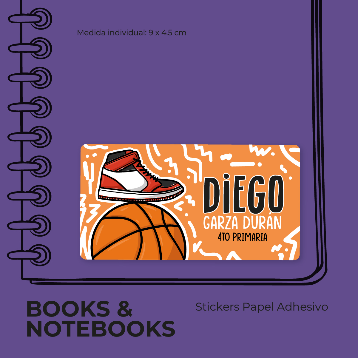Impresas a todo color y personalizadas con su nombre y datos escolares, estas etiquetas están diseñadas para resistir el ritmo del ciclo escolar.