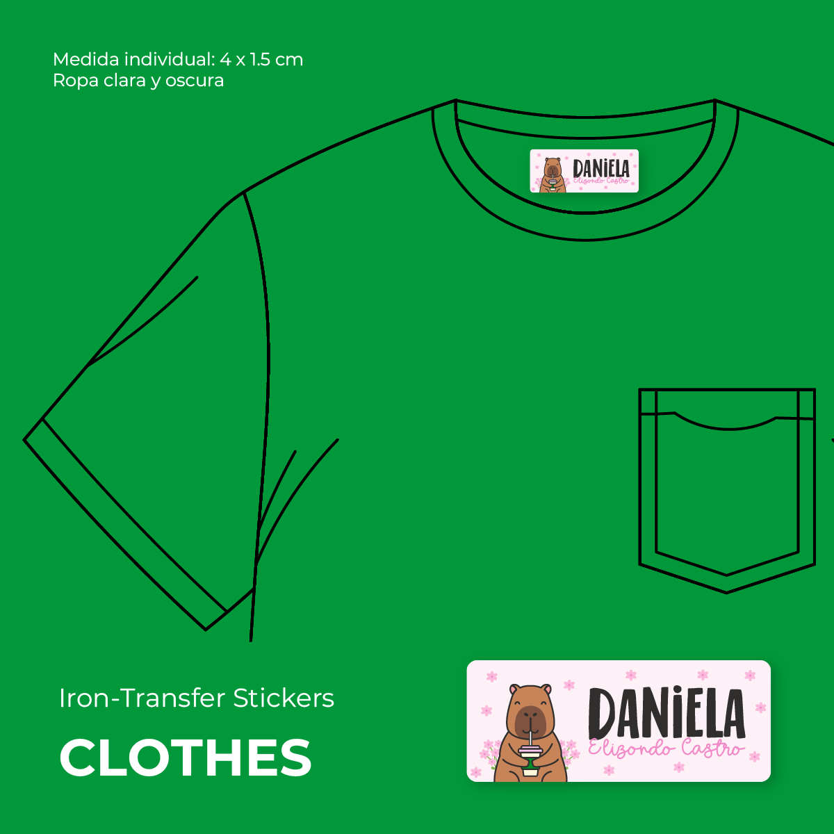¡La forma más práctica y duradera de marcar uniformes, suéteres, camisetas, calcetas y más…¡Perfectas para ropa clara y oscura!