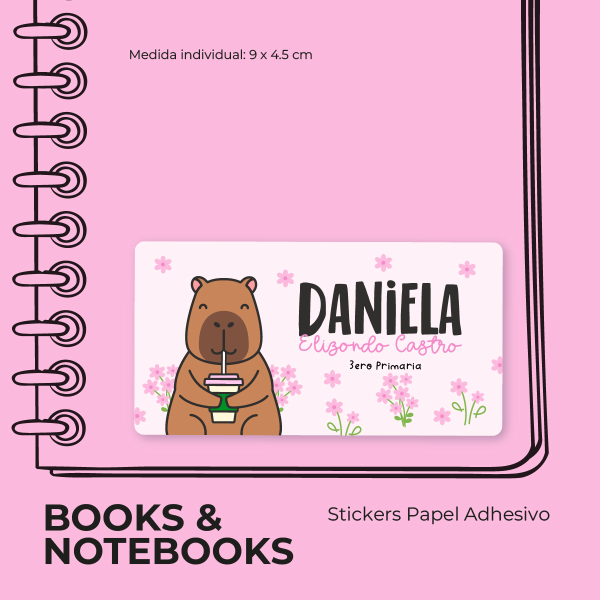 Impresas a todo color y personalizadas con su nombre y datos escolares, estas etiquetas están diseñadas para resistir el ritmo del ciclo escolar.