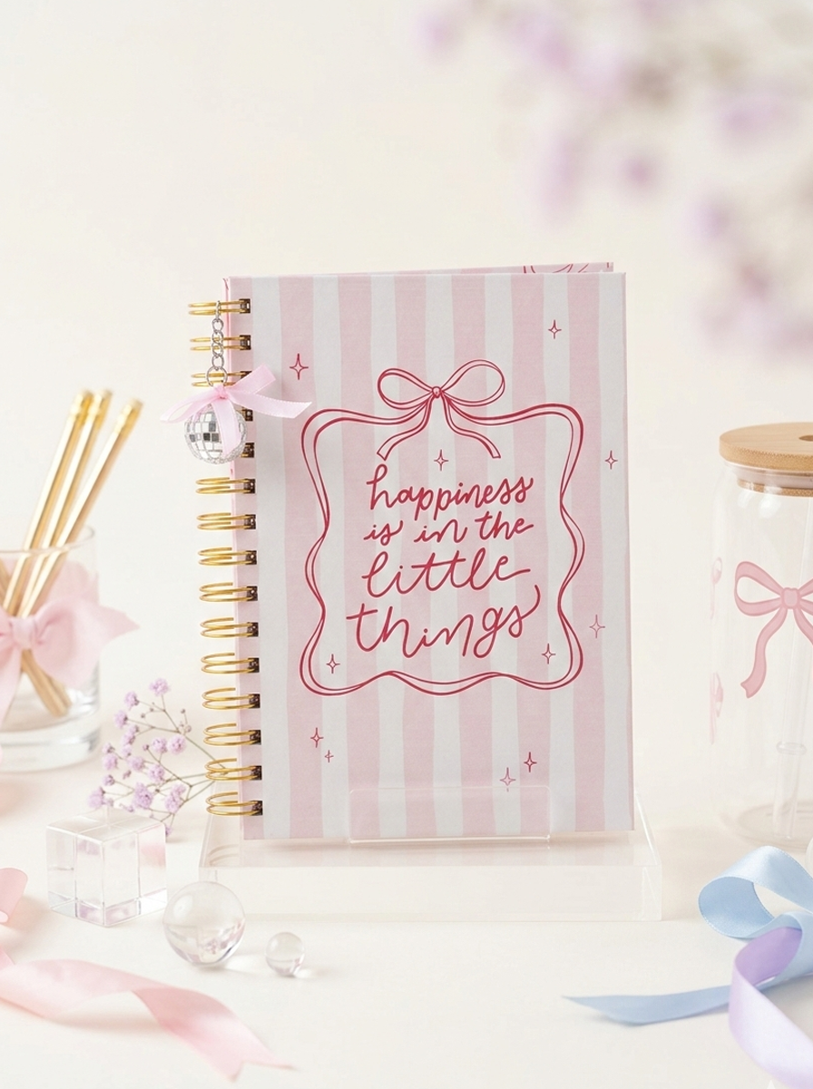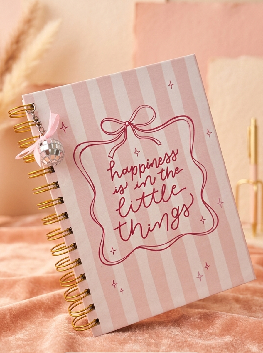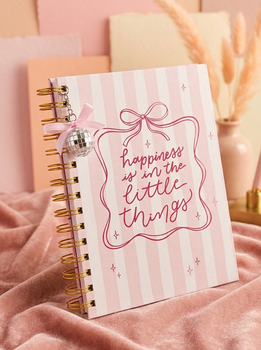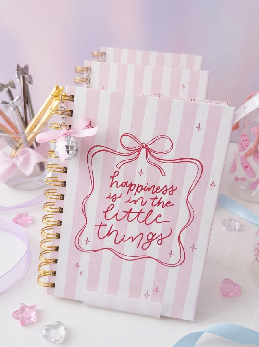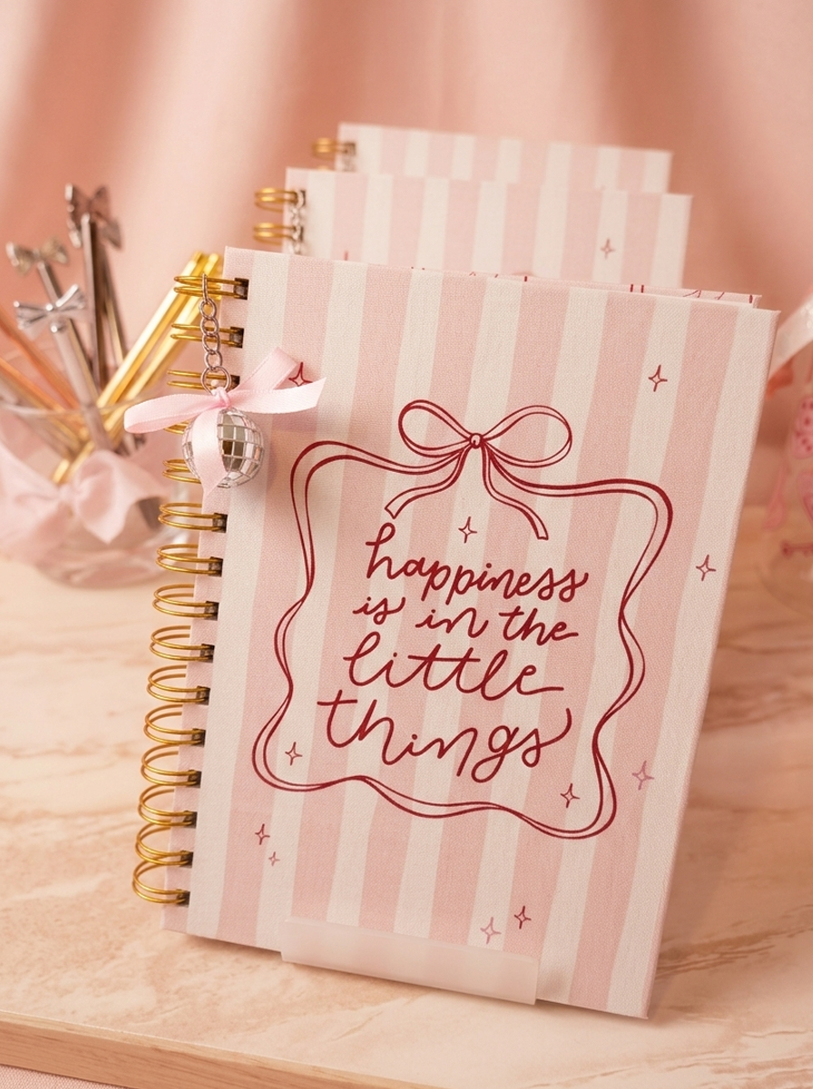 Diseñada en tamaño media carta, perfecta para traer en tu bolsa, en tu escritorio o junto a tu café favorito. Sus rayas delicadas te acompañan para escribir ideas, pensamientos, pendientes o esas listas que solo tú entiendes.
