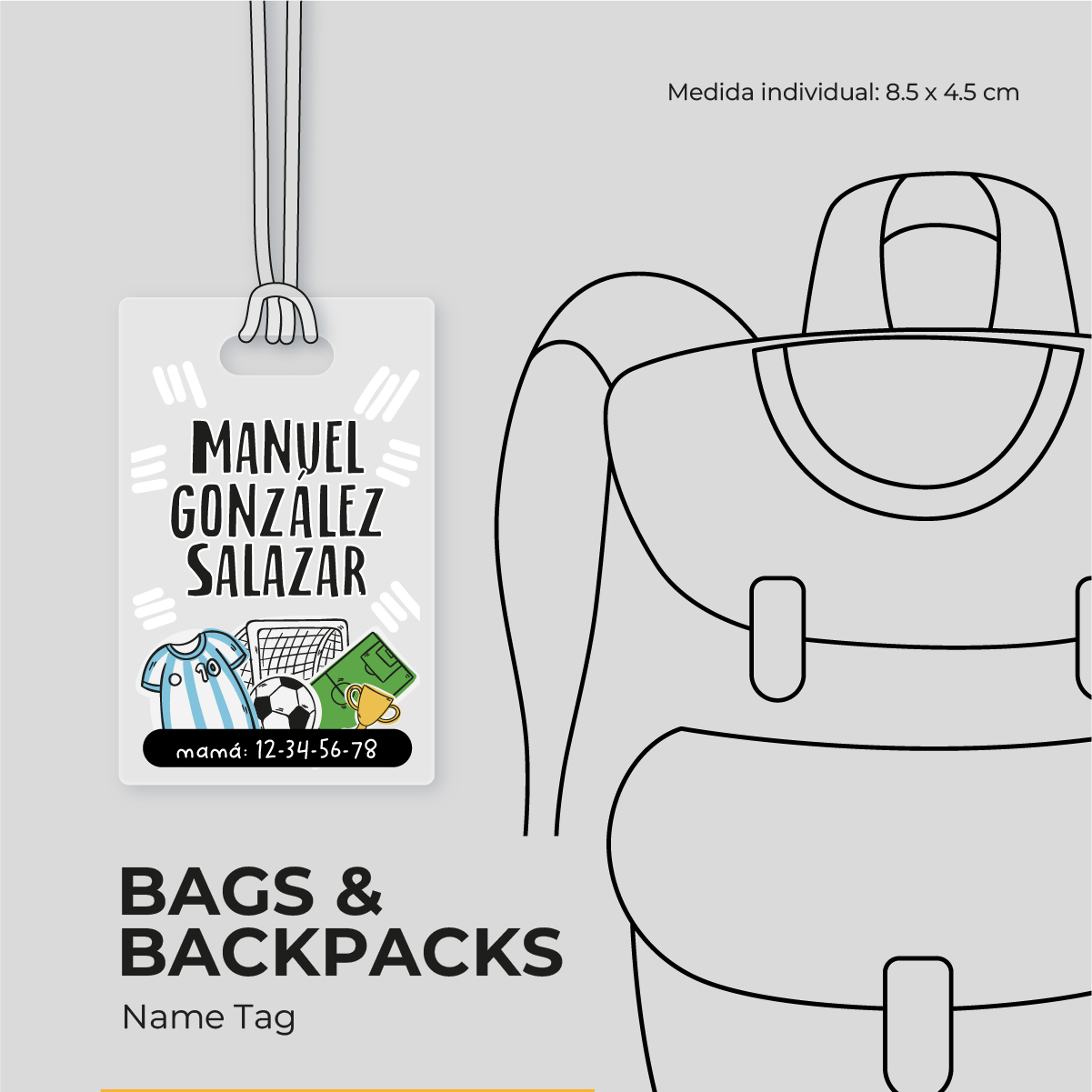 Dale un toque único a la mochila o lonchera con este identificador personalizado.