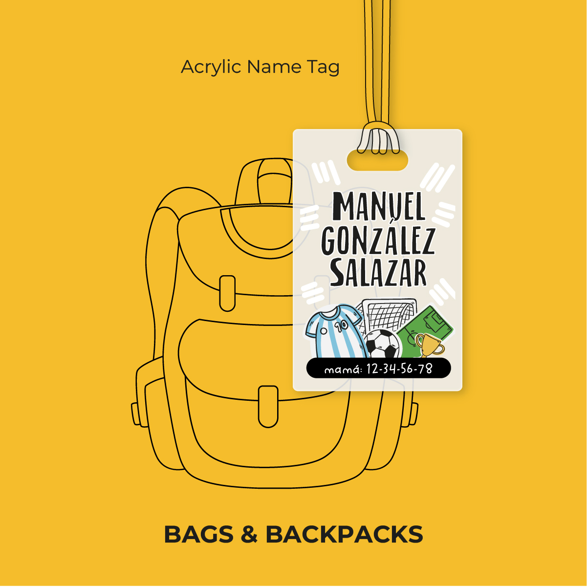 🎒 Identificador acrílico para mochila — personalizado