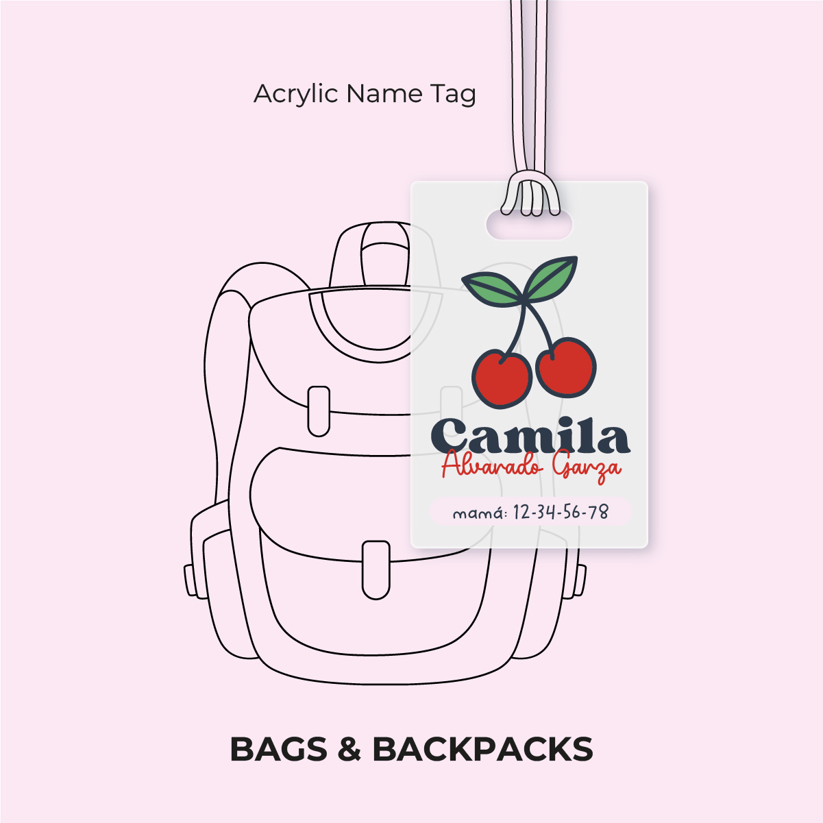 Pink Cherry Acrylic Name Tag