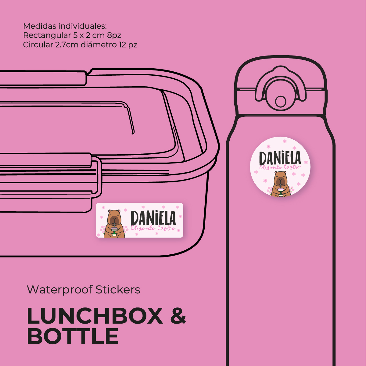 20 stickers resistentes al agua para toppers, botes y termos (Lunchbox & Bottles)
