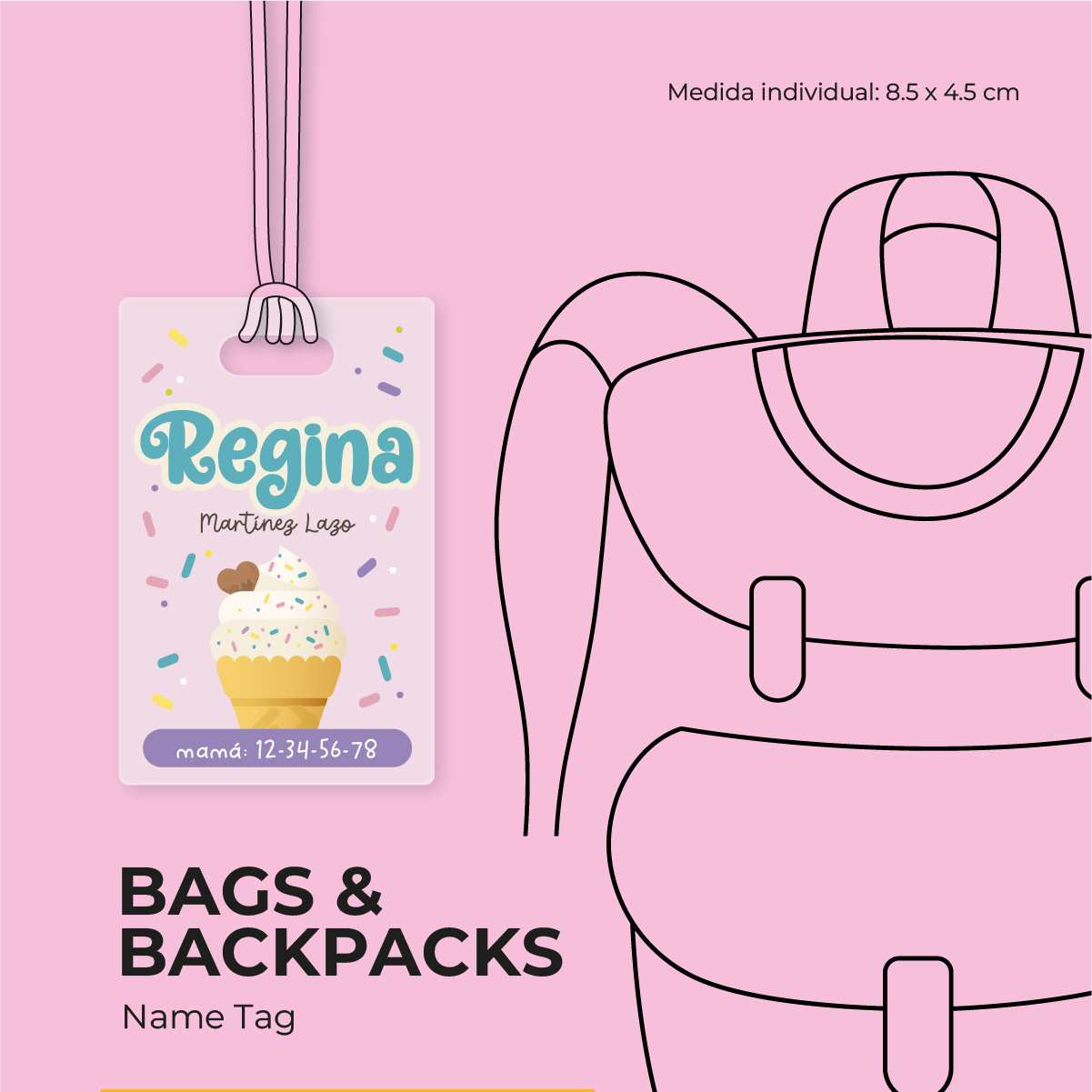 Dale un toque único a la mochila o lonchera con este identificador personalizado.