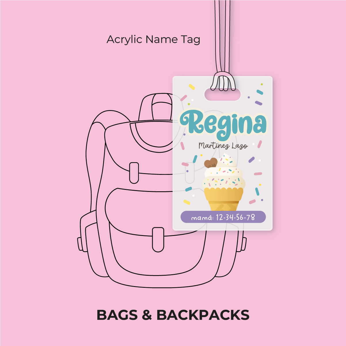 🎒 Identificador acrílico para mochila — personalizado